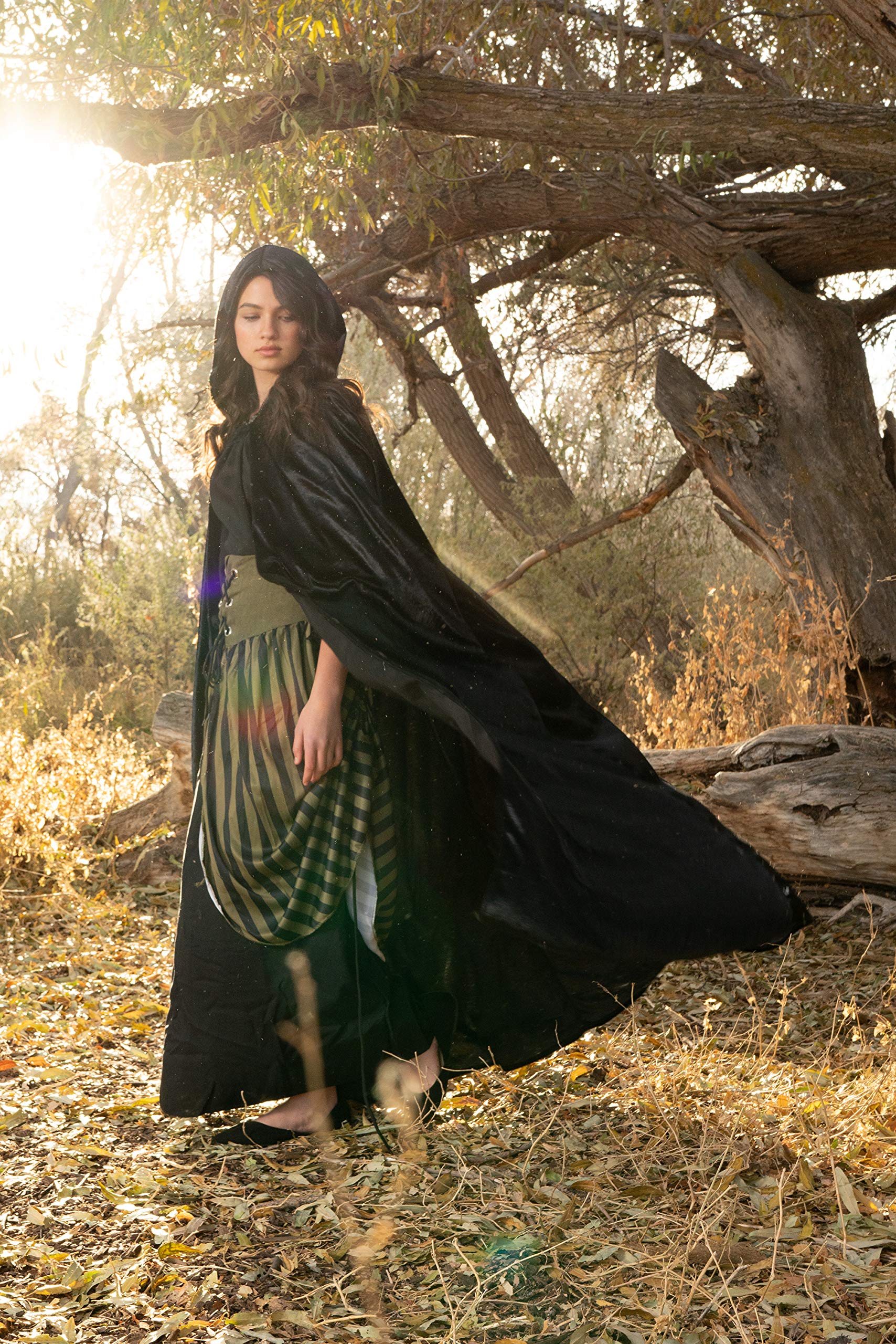 - The Little Adventures Full Length Velvet Hooded Cloak/Cape for adults is perfect for a variety of dress-up occasions. They're machine washable and made for repeat use and features a fully lined hood and metal fastening clasp.