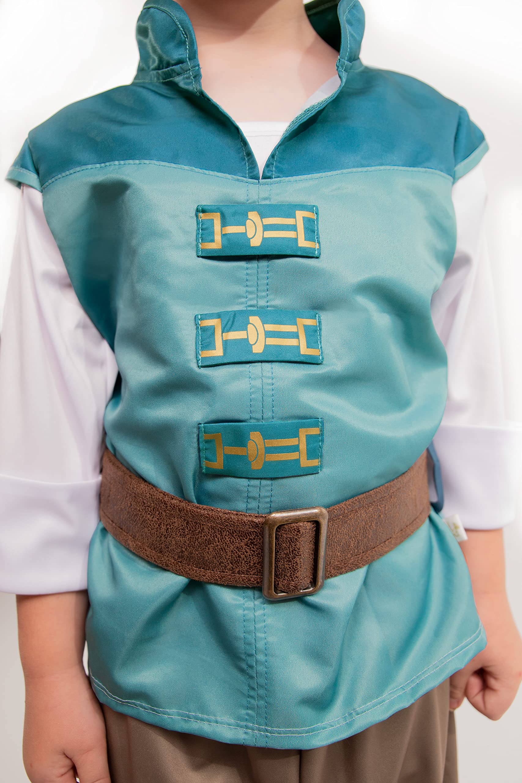 - Your child will be ready to set off on adventure, rescue a damsel, or just about anything in their new Tower Prince set! The two-piece set comes with a soft two toned teal shirt with cuffed sleeves and sewn on "buckles" and soft stretch knit pants with elastic waist. Also comes with adjustable hook and loop brown belt.